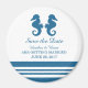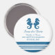 Elegant and classic Nautical Seahorse Save the Date Magnet with a pair of simple seahorses and an array of stripes in dark navy blue and white. This nautical beach themed save the date magnet can be easily customised with your wedding details. For more customisation options, click on the Customise It button.