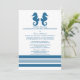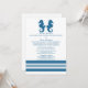 Elegant and classic Nautical Seahorse Wedding Invitation with a pair of simple seahorses and an array of stripes in dark navy blue and white. This nautical beach themed invite can be easily customised with your wedding details. For more customisation options, click on the Customise It button.