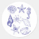 This elegant sticker features a hand-drawn blue line art illustration of seashells, starfish, and a seahorse — perfect for ocean lovers, beach dreamers, and coastal decor fans. The intricate nautical sketch adds a tranquil, breezy charm .