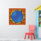 Transform your walls into a view from the sea with this stunning nautical porthole poster. The high quality illustration features a classic brass ship window looking out into a deep blue ocean filled with rising bubbles, all set against a rustic orange wood plank background. This maritime wall art is perfect for decorating a beach house, a childs pirate themed bedroom, or a nautical office space. It serves as a beautiful focal point that brings the calming aesthetic of the underwater world into your home decor. Whether you are a sailing enthusiast or just love coastal style, this vibrant print adds an adventurous touch to any room.