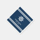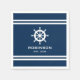 Nautical ship wheel navy blue and white stripes wedding napkins. Elegant typography template for family name and established year date of marriage. Customisable colours. Personalised party supplies for newly weds, couple, bride and groom, guests, sailor family etc. Helm logo with name.