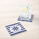 Nautical Ship Wheel Navy Blue Stripes Family Name Square Paper Coaster
