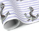 Original watercolor painted design by Sandra Gale, featuring a bold metal anchor with a large rope wrapped around it. Horizontal painted translucent stripes make a watery nautical background for this summer design. Great for beach bungalows and shore homes!