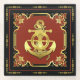 Nautical ship's wheel/anchor brick-red/gold glass coaster