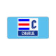 Nautical Signal Code Flag C "Charlie" Labels. Square marine signal flag sticker "Charlie" - letter C with blue, white and red colour bars maritime label sheet maritime stickers.