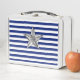 Nautical Silver Star Design on Stripes Metal Lunch Box
