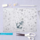 Wonderful for nautical or beach themed events! This design is great for anyone who enjoys the ocean and related activities, including: boating, fishing, water skiing, surfing, swimming, sailing, and other water sports. Also fun for military personnel and veterans, notably of the Navy, Marines, and Merchant Marines. A smokey slate blue anchor with white rope is submerged, shown by air bubbles. Background is white and silver grey, but a tint be easily added by clicking "Customise it" and choosing a colour.