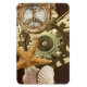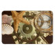 A fun nautical steampunk design. Gears, and cogs, a nautical compass, starfish, shells and vintage writing on a wood background.