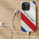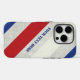 This jaunty nautical stripe phone case is ready for your name or other personalised text option. Handsome red, white, navy and grey printed colours with a stencil font to compliment the look. Choose from the latest iPhone or other models in a variety of sizes and styles in the drop down menu.