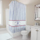 Welcome your friends and family aboard your boat or cottage home with this shower curtain. This nautical striped monogram boat name design features classic blue pinstripes and a compass rose emblem. Personalize with your boat's name and available in a collection of nautically themed items. Perfect for grilling on your boat or back yard, boat lovers, coastal homes, or seaside entertaining. Stylish and personalized, this nautical design adds a crisp maritime touch to everyday use.