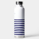 Nautical Stripe Navy Blue Trendy Stylish 9 Stripes Water Bottle