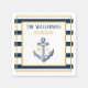Welcome friends and family to join you on the happiest day of your life with these classic nautical stripes and anchor wedding napkins. Design features modern navy and white nautical stripes with gold accents. Personalise names, dates, and more with the easy to use templates. Find matching products in my Nautical Stripes Wedding Collection below.