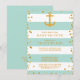 A festive design featuring wide horizontal mint green and white stripes with gold dots. A gold anchor motif gives it a nautical flair. Personalise this invitation for a baby shower or sprinkle. This invite is great for nautical, beach or ocean theme. ©Cindy Bendel Designs LLC All Rights Reserved.