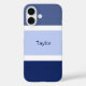 You'll love this simple and stylish nautical hued cell phone case with a blue and white stripe pattern. Multiple shades of large blue stripes plus small white stripes. Personalised with your name printed in a blue text.