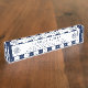 A stylish desk nameplate featuring a nautical theme. It includes bold navy and white stripes running vertically down the top. Towards the centre, your information is flanked by two ship wheels completing the nautical look.