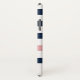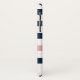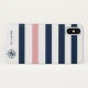 Nautical phone case with stripes in various colours of teal, navy blue, coral and gold with compass at the bottom and your own monogram