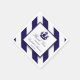 The design features a whimsical navy blue ship motif on a nautical navy and white striped background.