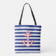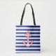 Nautical Style Anchor Icon on Stripes Tote Bag