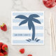 Pretty paper napkins with a stenciled palm tree and blue and white stripes. The wording reads "Welcome Guests". Lovely for your summer gatherings. Goes great with coastal kitchen decor.
