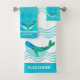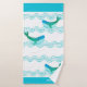 Nautical Teal Blue Whale Waves Bath Towel Set