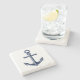A trivet with a unique nautical theme. It features an anchor centred in the middle in a vibrant navy and white colour scheme.
