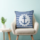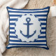Nautical Theme Blue White Anchor Marine Stripe Cushion