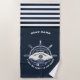 Nautical Theme Boat Name Navy Blue Stripe Beach Towel