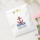 Nautical wedding theme white paper favour bag, with graphics of a red anchor and blue knotted rope. Personalise the blue text for your wedding event. Great for candy bars, popcorn, and other favours.