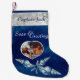 Navy Blue Nautical-themed Seas & Greetings Holiday Stocking. Featuring a heart-shaped photo and blue seashells