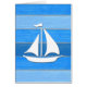 Nautical themed design with sailing boat decoration on striped blue and grey wooden background. Please note this is not made of wood, it is a wood graphic print.