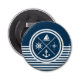 Nautical themed design with nautical symbols (anchor, sailing boat, sailing wheel, compass) decoration on white and navy blue striped background.