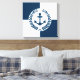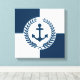 Nautical themed design with anchor and laurel wreath decoration over blue and white geometric background