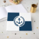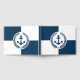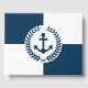 Nautical themed design with anchor and laurel wreath decoration over blue and white geometric background