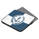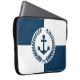 Nautical themed design with anchor and laurel wreath decoration over blue and white geometric background