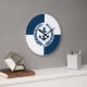 Nautical themed design with anchor and laurel wreath decoration over blue and white geometric background
