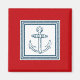 Nautical themed design with anchor decoration in striped squares on red background