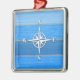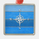 Nautical themed design with compass decoration on striped blue and grey wooden background. Please note this is not made of wood, it is a wood graphic print.