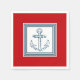 Nautical themed design with anchor decoration in striped squares on red background