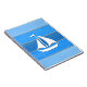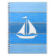 Nautical themed design with sailing boat decoration on striped blue and gray wooden background. Please note this is not made of wood, it is a wood graphic print.