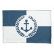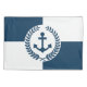 Nautical themed design with anchor and laurel wreath decoration over blue and white geometric background