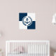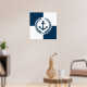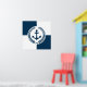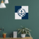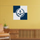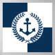 Nautical themed design with anchor and laurel wreath decoration over blue and white geometric background