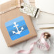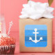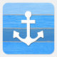 Nautical themed design with anchor decoration on striped blue and grey wooden background. Please note this is not made of wood, it is a wood graphic print.