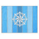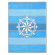 Nautical themed design with compass decoration on striped blue and grey wooden background. Please note this is not made of wood, it is a wood graphic print.