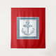 Nautical themed design with anchor decoration in striped squares on red background