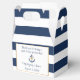 Nautical themed Favour Boxes with blue striped background and and anchor accent - Faux gold heart and border - Perfect for weddings, Bridal Showers, engagement parties and other events!