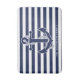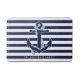 Nautical themed gifts - personalised bath mat with navy blue anchor, white and blue stripes and customisable text, where you can add family name or any other text. It's medium size bath mat and measures 20 inches by 30 inches.
