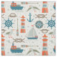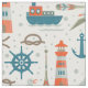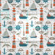 Red, teal, grey nautical graphics on white background, seamless repeat pattern