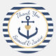 Nautical Themed Wedding Thank You Stickers - Personalise with names - Blue and white stripes with anchor - Faux Gold Border and Heart