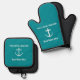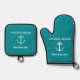 Nautical Turquoise Welcome Aboard Boat Name Anchor Oven Mitt & Pot Holder Set