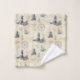 Add a coastal flair to your bathroom with this vintage nautical bath towel set, with a pattern of vintage lighthouses, sailboats and nautical icons set against a background of old paper, script letters, and postal cancels.